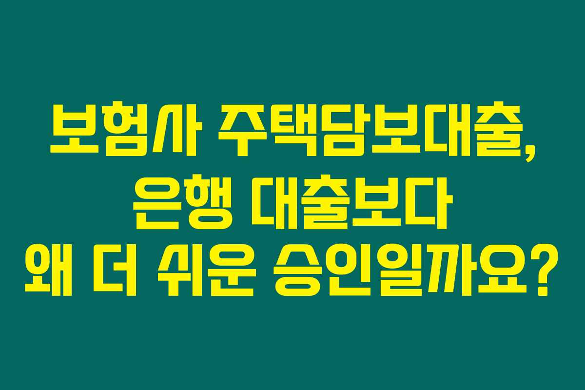 보험사 주택담보대출, 은행 대출보다 왜 더 쉬운 승인일까요?