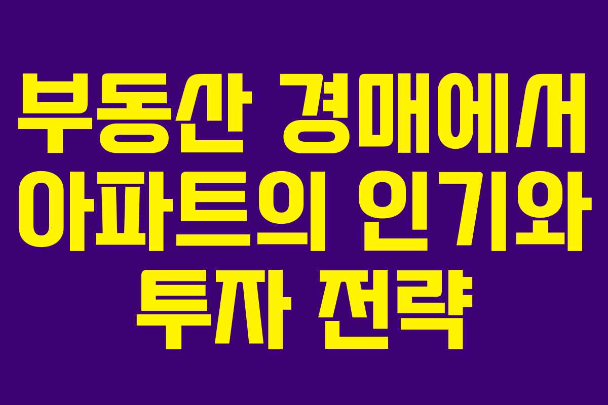부동산 경매 시장에서 아파트는 꾸준히 수요가 높은 매물로 여겨집니다. 최근, 일부 아파트가 감정가보다 낮은 가격에 유찰된 후 다시 매각되고 있어 관심을 끌고 있습니다. 이러한 변화는 경매 투자자들에게 좋은 기회를 제공할 수 있습니다.