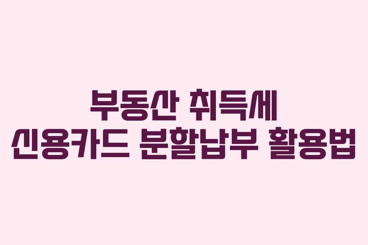 부동산 취득세는 주택을 매수할 때 반드시 납부해야 하는 세금입니다. 이번 글에서는 취득세 납부 시 신용카드를 활용한 분할납부 방법에 대해 자세히 알아보겠습니다.