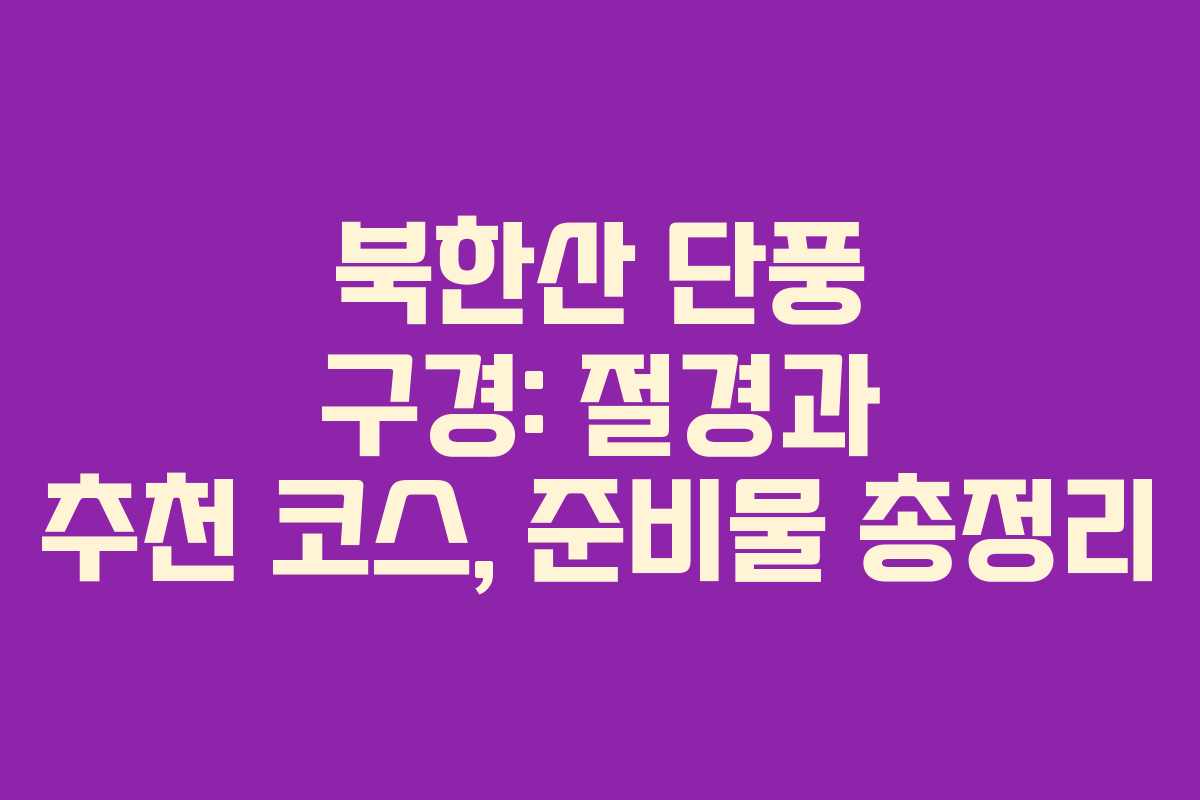 가을이 되면 북한산은 아름다운 단풍으로 물들며 많은 이들에게 사랑받는 명소가 됩니다. 특히 10월 중순부터 시작되는 단풍 시즌은 등산객과 사진가들이 몰리는 인기 있는 시기입니다. 이번 글에서는 북한산 단풍 구경을 위한 절정 시기, 추천 코스, 필수 준비물 등을 정리해 보겠습니다.