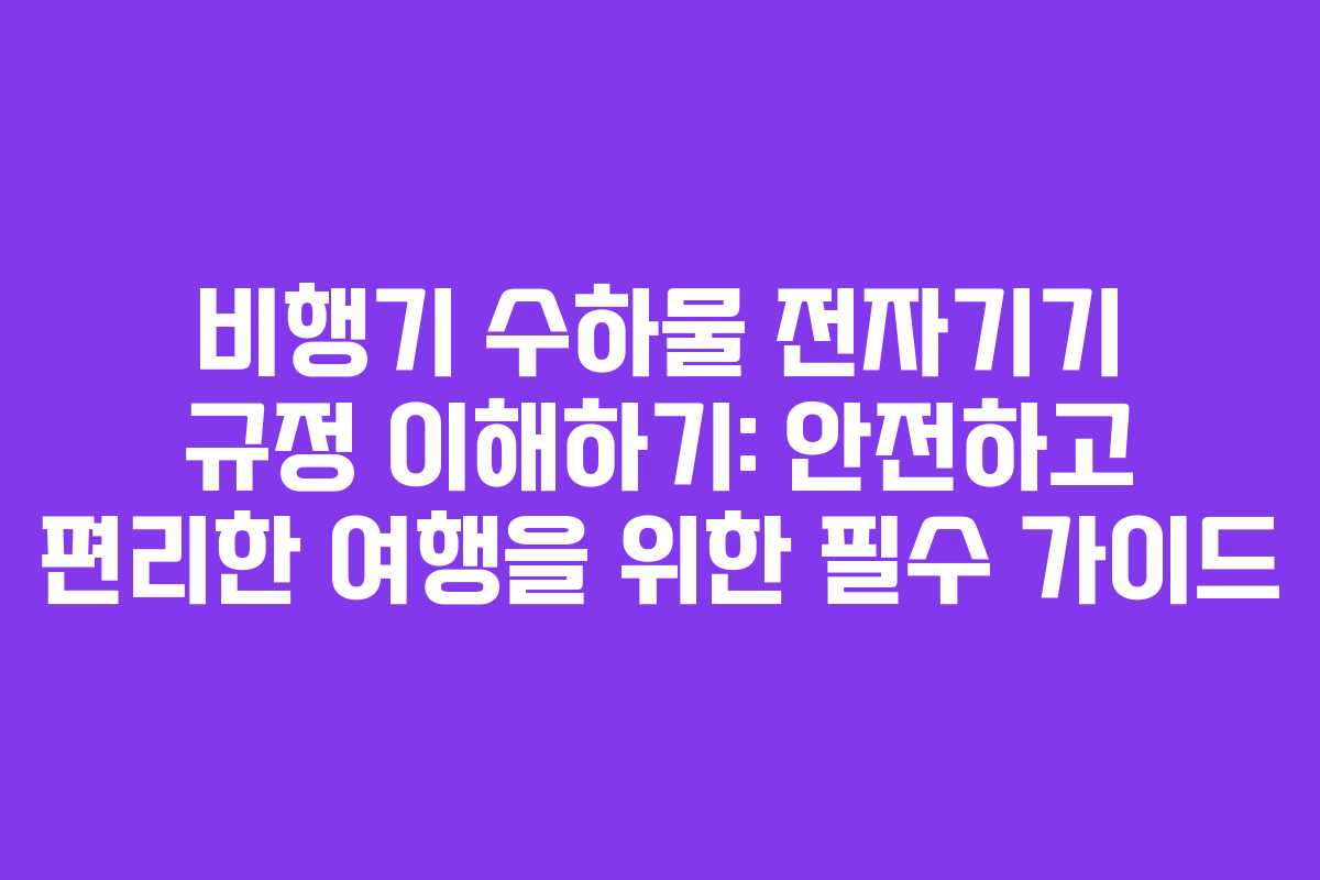 비행기를 이용한 여행 시, 수하물과 관련된 규정은 매우 중요합니다. 특히 전자기기에 대한 규정은 각 항공사마다 상이할 수 있으며, 이러한 정보를 미리 숙지하는 것이 필요합니다. 본 가이드는 비행기 수하물 반입 시 전자기기와 배터리에 대한 규정을 자세히 설명하고, 안전한 여행을 위한 유용한 정보를 제공합니다.