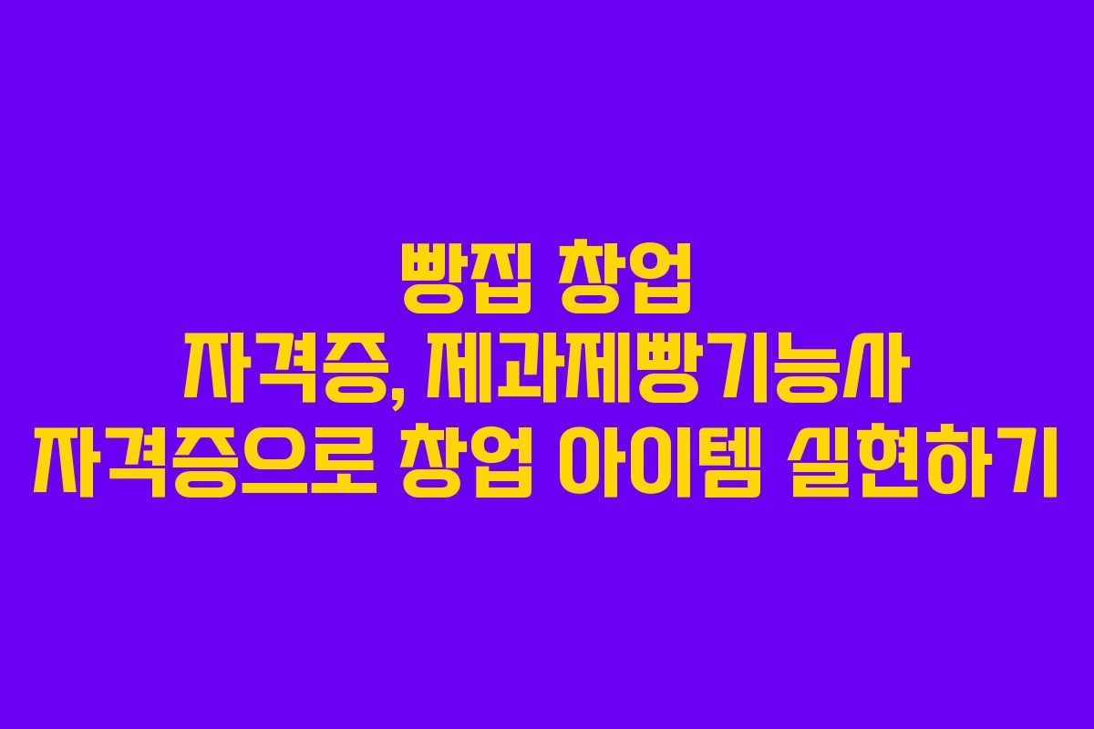빵집 창업 자격증과 제과제빵기능사 자격증은 창업을 꿈꾸는 이들에게 필수적인 자산이 될 수 있습니다. 자격증 취득 후 다양한 창업 아이템을 통해 자신만의 빵집을 운영할 수 있으며, 이를 통해 안정적인 소득을 창출할 수 있습니다. 제과제빵기능사 자격증을 통해 새로운 기회를 찾고 이를 실현하는 과정이 창업 성공의 열쇠가 될 것입니다.