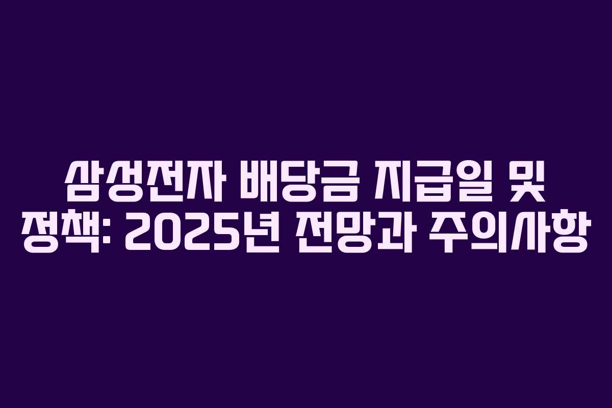 삼성전자 배당금 지급일 및 정책: 2025년 전망과 주의사항