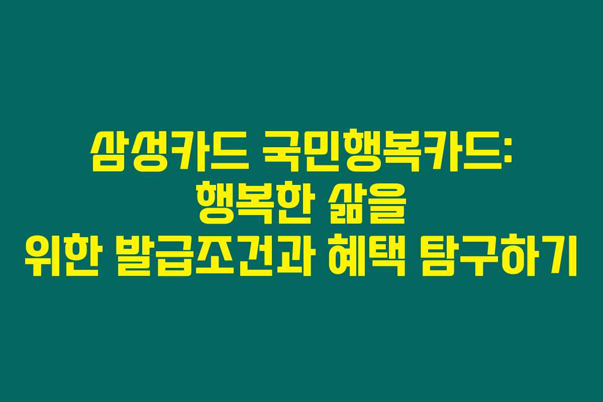 삼성카드 국민행복카드: 행복한 삶을 위한 발급조건과 혜택 탐구하기