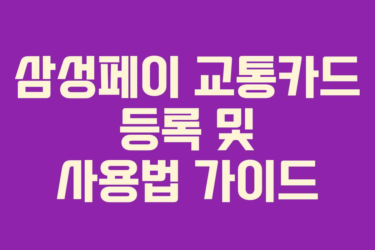 삼성페이로 등록한 교통카드는 사용 방법이 간단합니다. 실물 카드 없이 스마트폰만 있으면 대중교통을 쉽게 이용할 수 있습니다.