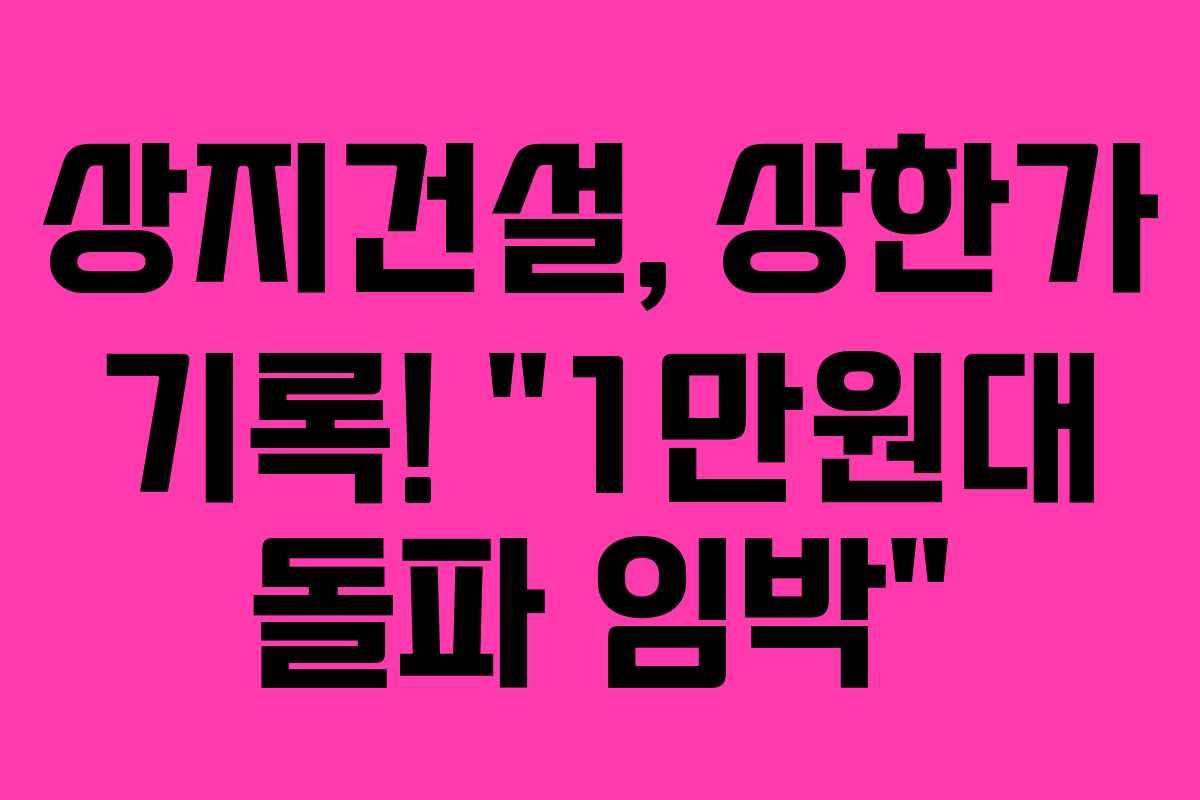 상지건설의 상한가는 부동산 규제 완화와 M&A 기대감이 반영된 결과입니다. 10,000원 돌파 여부가 단기적인 핵심 포인트가 될 것입니다. 수익 확보와 리스크 관리에 집중하며 신중하게 대응하시기 바랍니다.