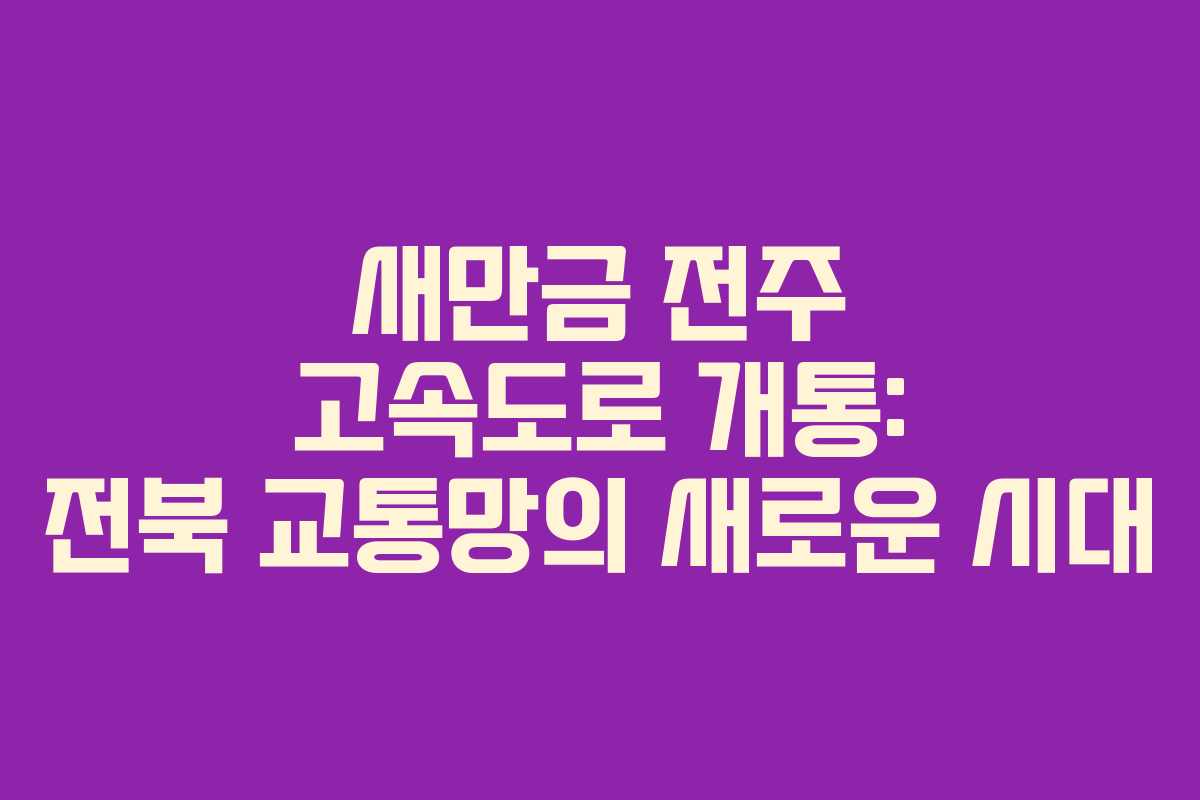 새만금-전주 고속도로가 11월 22일 오전 10시에 정식 개통됩니다. 이 도로는 전라북도 김제시 진봉면에서 전주시를 거쳐 완주군 상관면까지 연결되는 총 연장 55.1km의 왕복 4차로 도로로, 교통망의 중요한 축을 담당하게 될 것입니다.