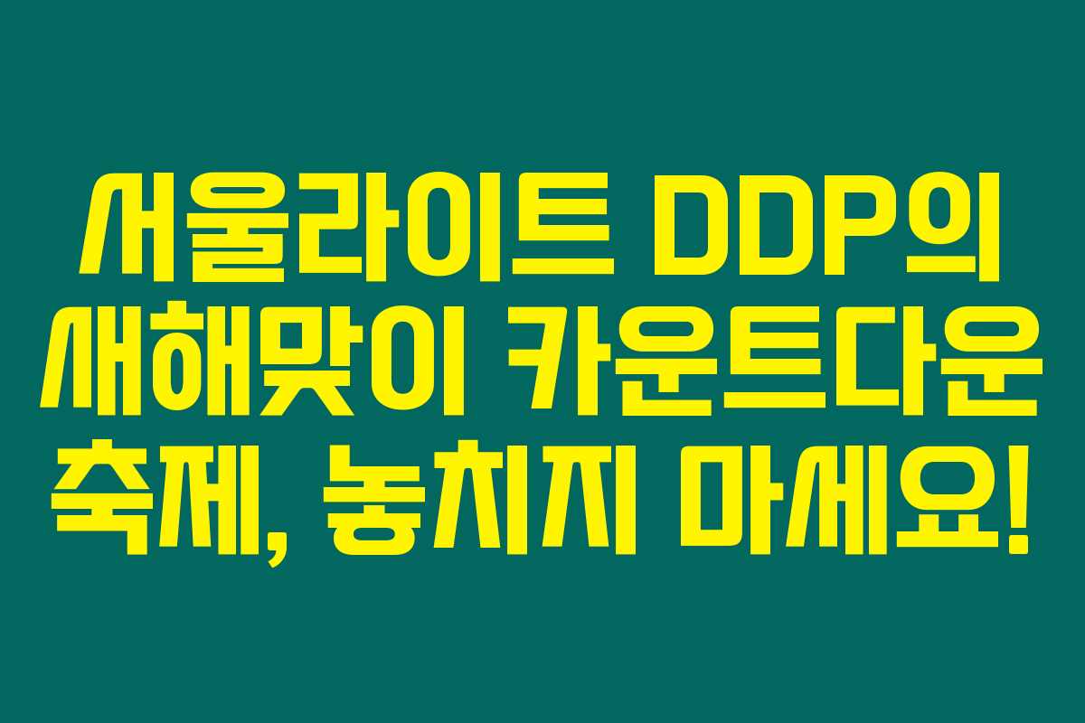 12월 31일, 서울의 DDP에서 새해맞이 카운트다운 축제를 준비했습니다. 서울라이트 DDP의 화려한 불빛과 더불어 다양한 공연이 펼쳐질 예정이니, 연말을 특별하게 보내고 싶은 분에게 안성맞춤이에요. 아래를 읽어보시면 이 축제의 생생한 일정과 프로그램에 대해 충분히 알 수 있을 거예요!