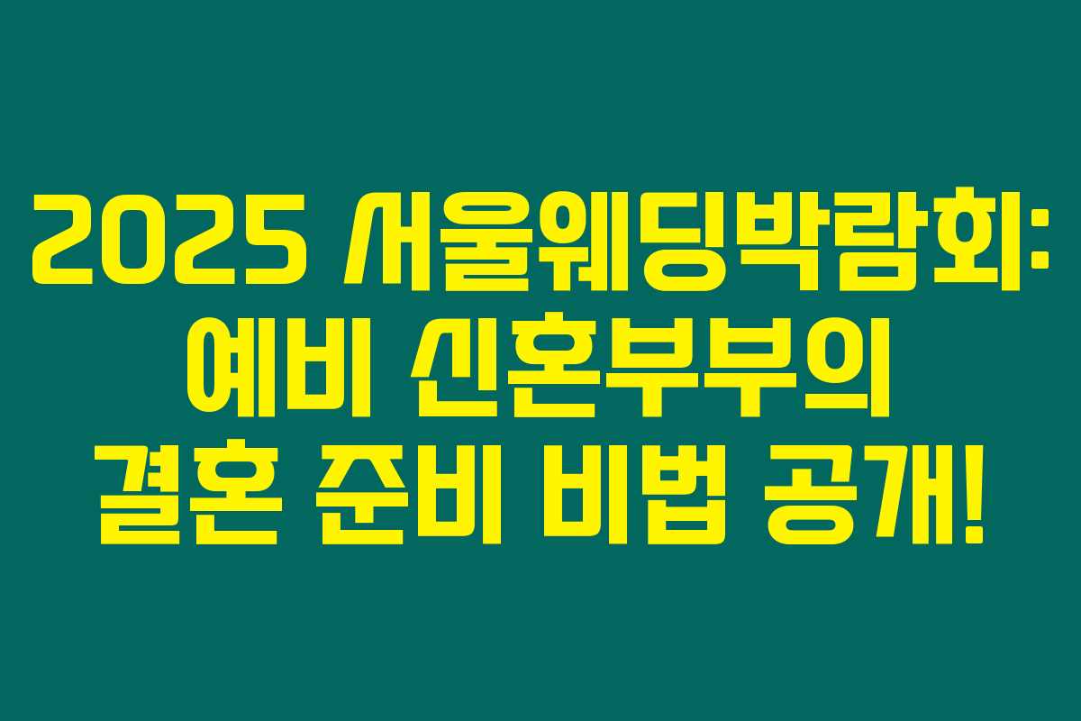 2025 서울웨딩박람회는 예비 신혼부부를 위한 최고의 정보와 혜택이 가득해요! 방문 계획을 세우고 결혼 준비를 한 번에 해결해보세요. 행복한 결혼 준비 되세요!