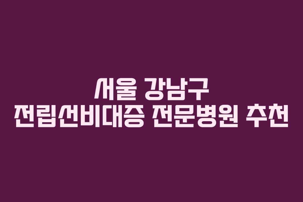 서울 강남구 내 다양한 병원에서 전립선비대증 치료를 제공하므로, 온라인 리뷰나 추천을 참고하여 적합한 병원을 선택하는 것이 좋습니다.