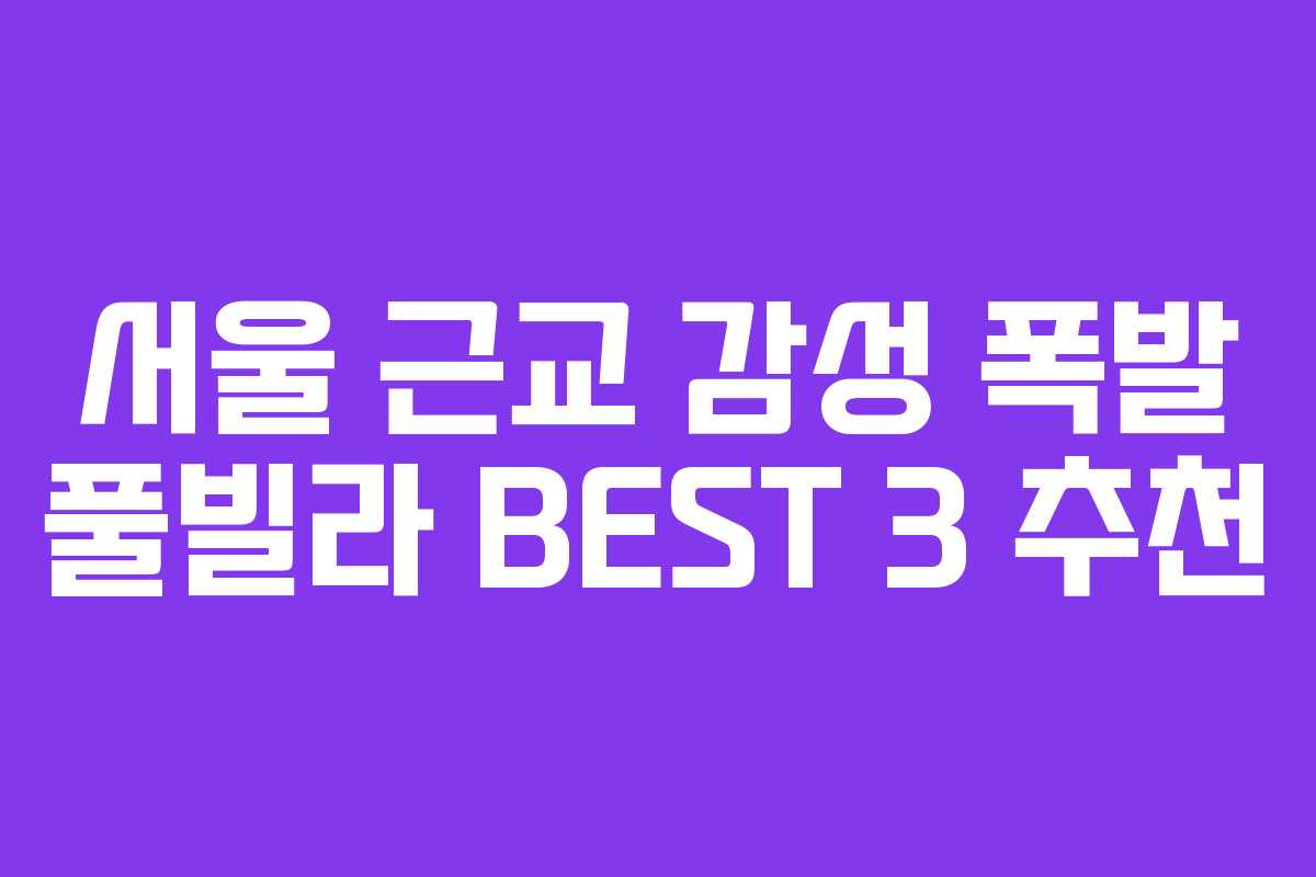 서울 근교에 위치한 감성 넘치는 풀빌라들은 여유롭고 특별한 시간을 보내기에 최적의 장소입니다. 자연 속에서 프라이빗한 힐링을 원하는 이들에게 적합한 이곳들은 사람들에게 잊지 못할 경험을 선사합니다. 아래에서는 2026년 기준으로 추천하는 최고의 풀빌라 3곳을 소개합니다.