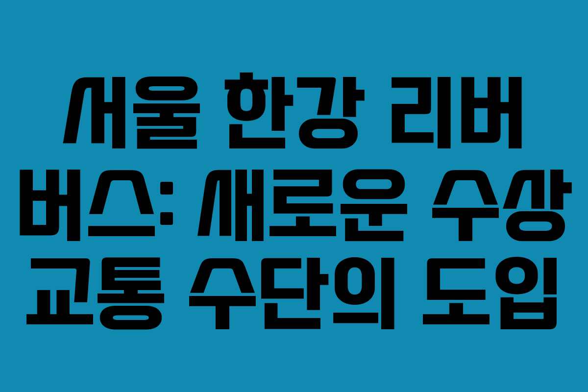 서울 한강 리버 버스: 새로운 수상 교통 수단의 도입