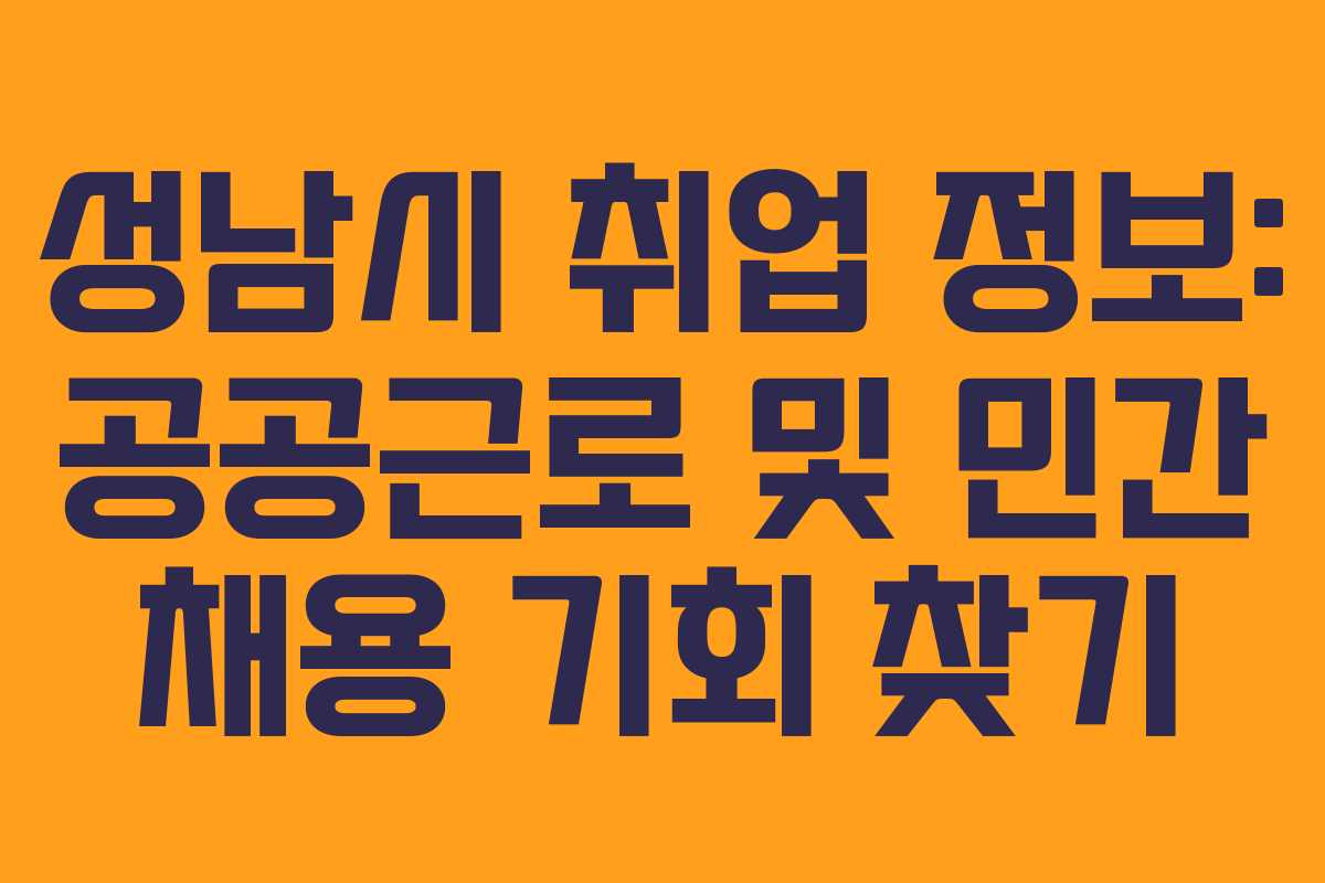 성남시 취업 정보: 공공근로 및 민간 채용 기회 찾기