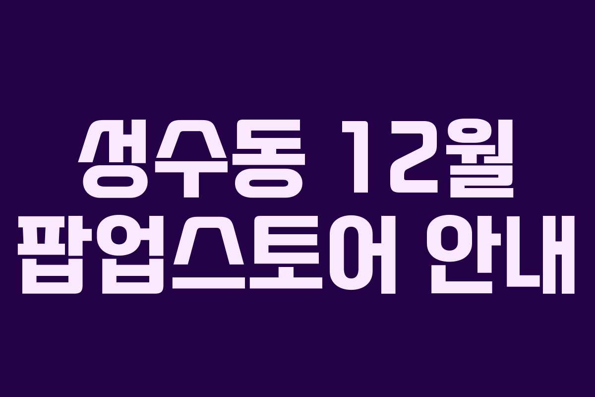 12월, 성수동에서는 다양한 팝업스토어가 열려 많은 이들의 눈길을 끌고 있습니다. 여기에서는 현재 진행 중인 팝업스토어와 앞으로 열릴 팝업스토어를 정리해 보았습니다.