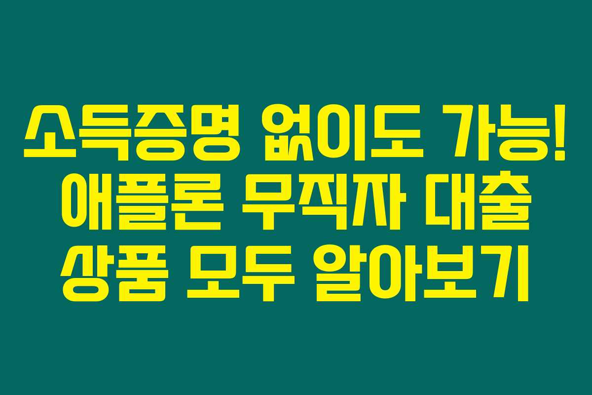 제가 직접 경험해본 결과로는, 소득증빙이 어려운 사람들에게 적합한 대출 상품이 많지 않아요. 특히, 4대 보험에 미가입된 경우나 무직자가 대출을 받고자 할 때 많이 활용할 수 있는 상품이 바로 “애플론 무직자 대출”이에요. 아래를 읽어보시면 이 대출 상품에 대한 다양한 정보와 유용한 팁을 확인할 수 있어요.