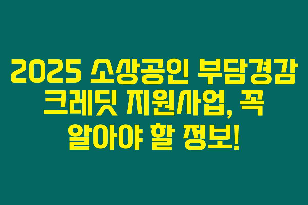 2025년의 소상공인 부담경감 크레딧 지원사업은 경제적으로 힘든 소상공인들이 꼭 잡아야 할 기회입니다. 신청 기간과 방법을 잘 숙지하여 놓치는 일이 없도록 확인해보세요!