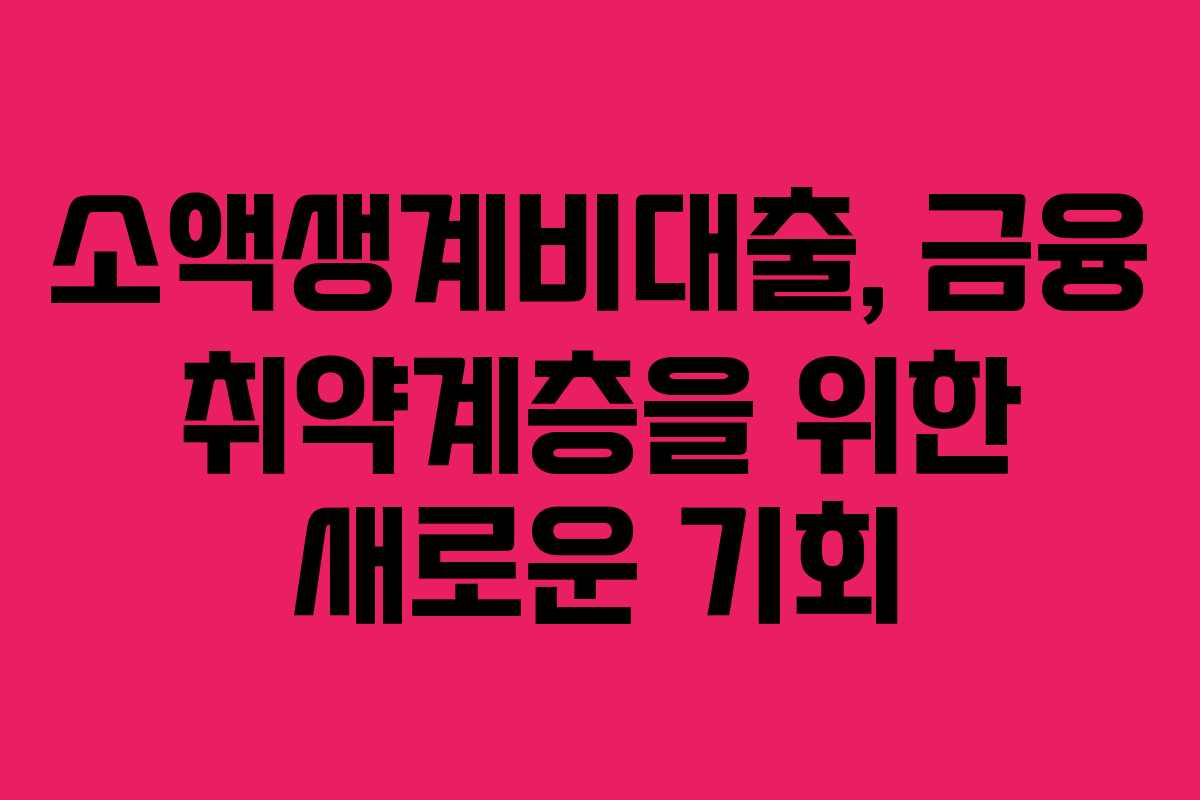 소액생계비대출, 금융 취약계층을 위한 새로운 기회