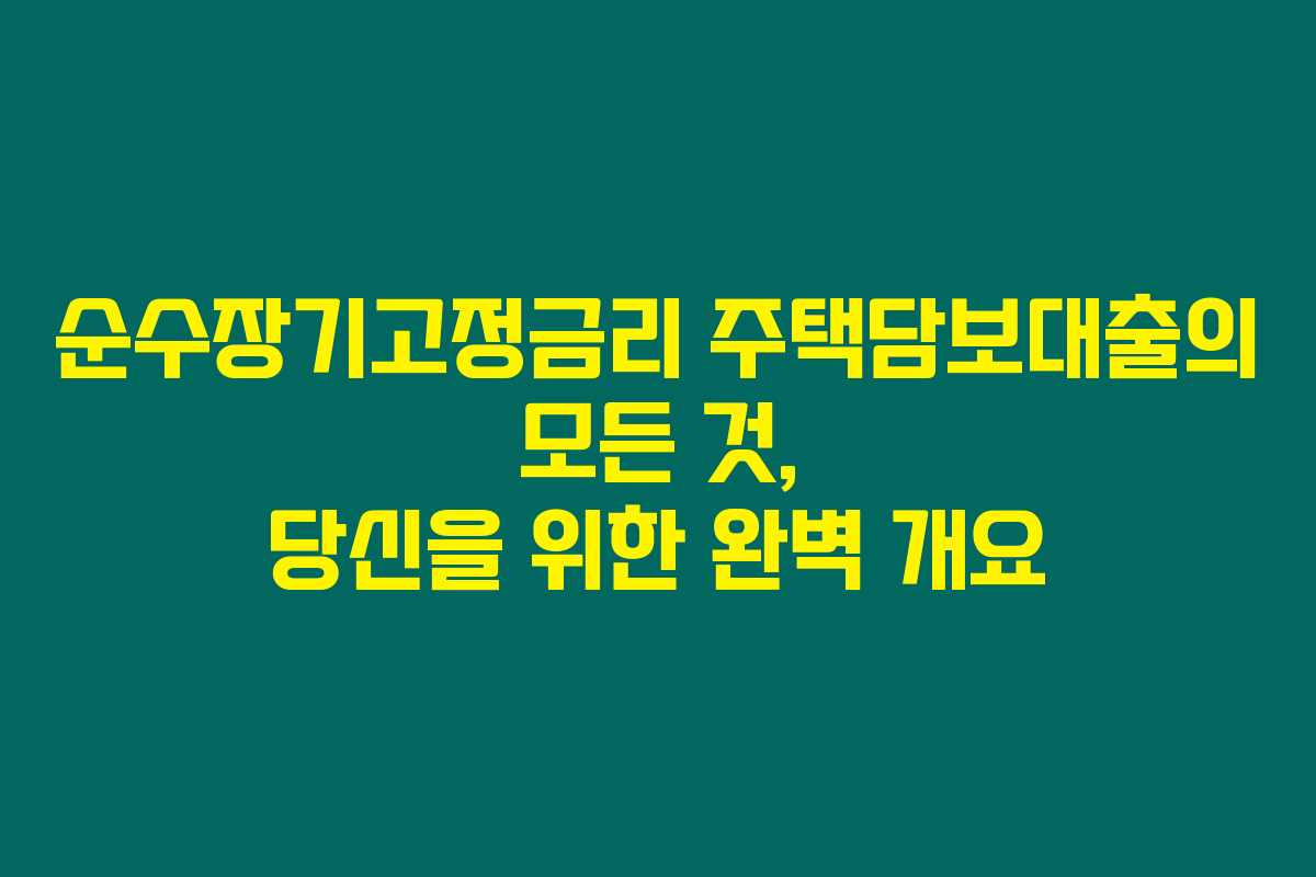 순수장기고정금리 주택담보대출의 모든 것, 당신을 위한 완벽 개요