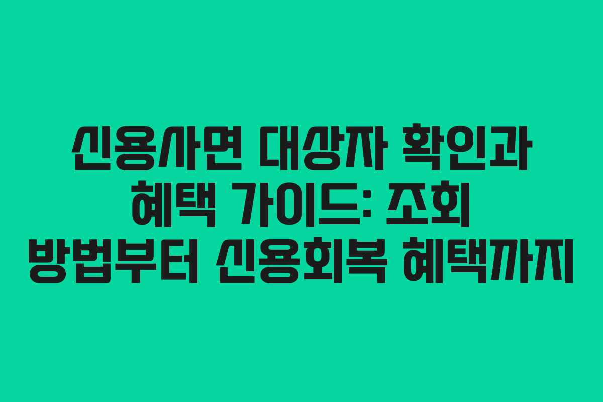 아래를 읽어보시면 신용사면 대상자 확인 방법과 혜택의 구체를 한눈에 파악할 수 있습니다. 조회 시점에 따른 자격 요건과 성실상환의 효과까지 핵심 내용을 간략히 정리했습니다.