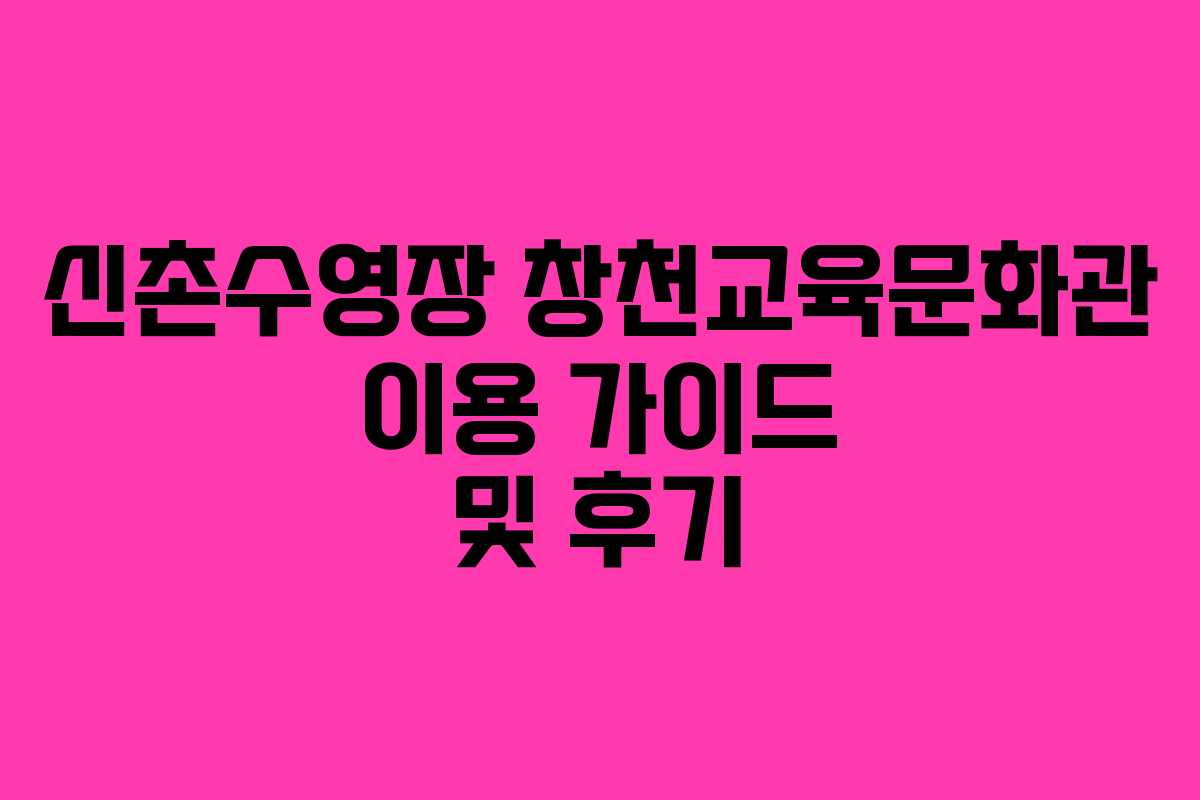 신촌수영장 창천교육문화관은 위치와 교통이 우수하여 많은 이들의 관심을 받고 있는 수영장이다. 이곳의 다양한 시설과 프로그램은 수영을 배우고자 하는 이들에게 최적의 환경을 제공한다. 특히, 수영 강습과 자유수영 프로그램이 잘 마련되어 있어 다양한 수요를 충족할 수 있다.