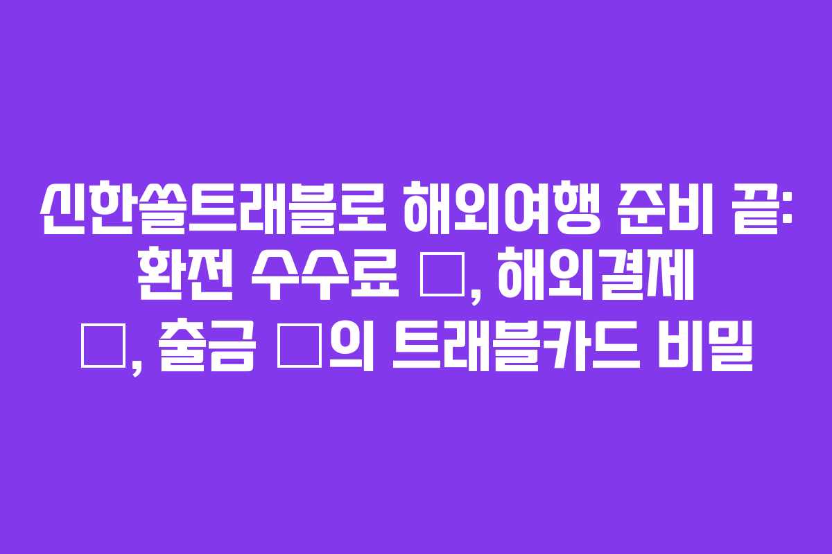아래를 읽어보시면 해외여행 경비를 크게 줄이는 비밀과 주의점이 공개됩니다. 신한쏠트래블의 환전 무료, 해외결제 무료, 출금 무료 혜택과 실제 활용 팁을 자세히 살펴봅니다.