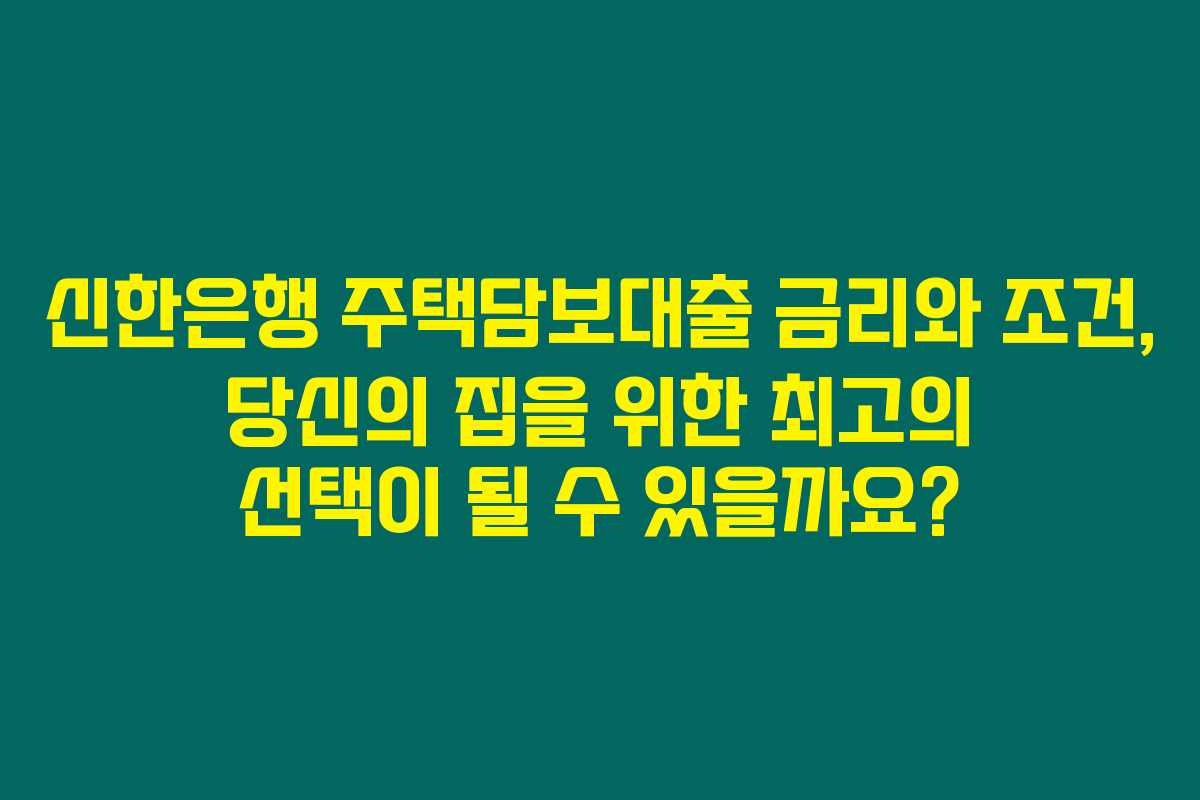 주택을 구매하거나 리모델링하려는 분들에게 신한은행 주택담보대출은 꼭 고려해봐야 할 금융상품이에요. 최대 50년의 상환 기간과 유리한 금리 옵션으로 많은 사람들이 애용하고 있습니다. 아래를 읽어보시면 신한은행의 주택담보대출에 대해 필요한 조건과 금리에 대한 상세한 정보를 알 수 있을거예요.