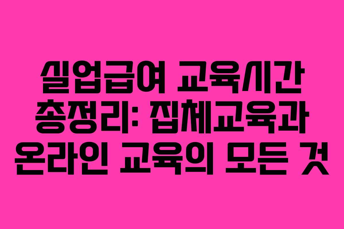 실업급여 교육시간 총정리: 집체교육과 온라인 교육의 모든 것