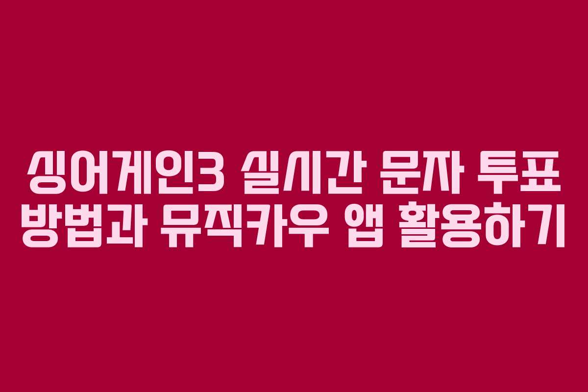 싱어게인3의 파이널 결승전에서 실시간 투표가 진행됩니다. 이번 투표는 문자 메시지와 뮤직카우 앱을 통해 참여할 수 있어 팬들의 많은 관심이 모이고 있습니다. 아래에서 구체적인 투표 방법을 안내해 드리겠습니다.