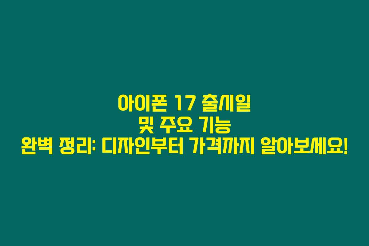 아이폰 17 출시일 및 주요 기능 완벽 정리: 디자인부터 가격까지 알아보세요!