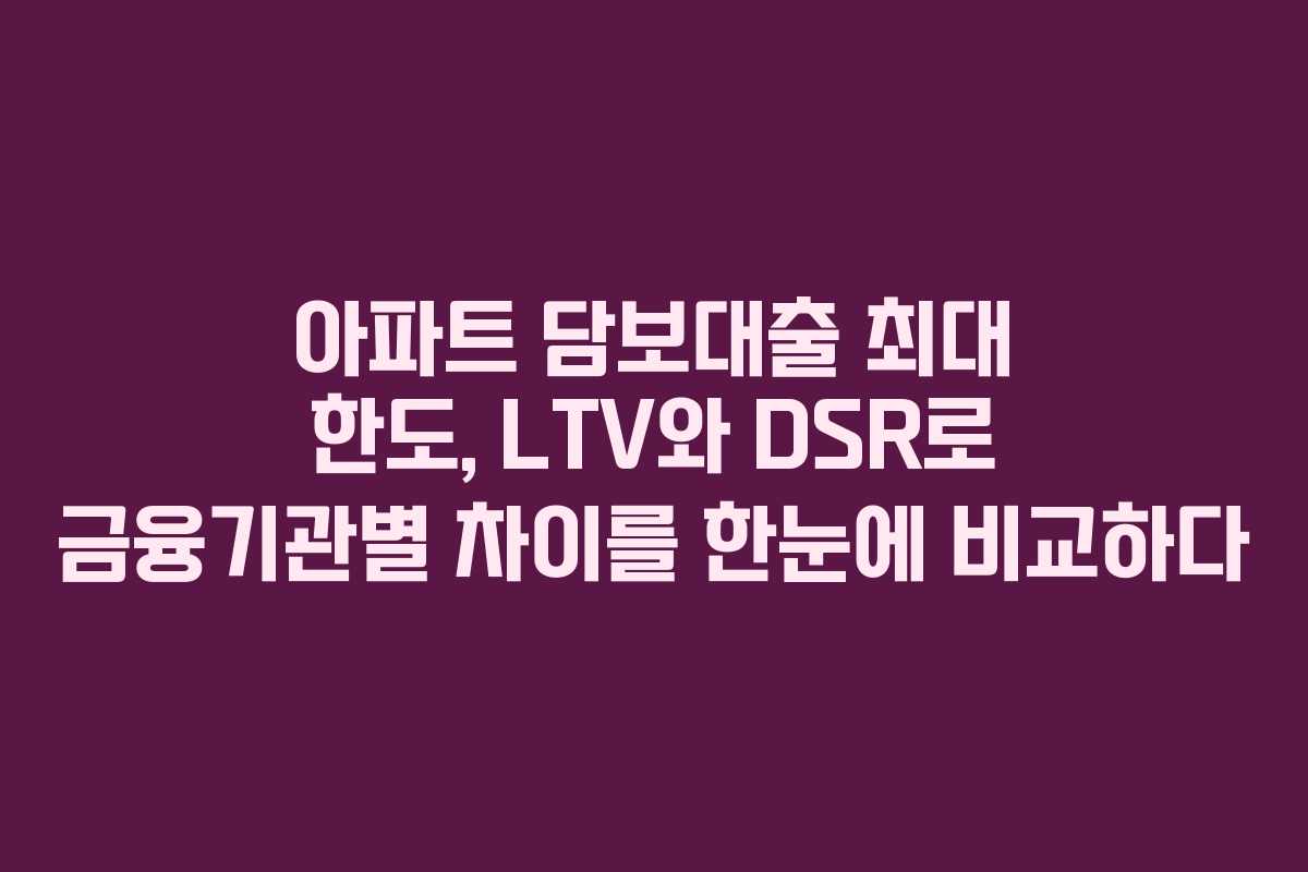 아파트 담보대출 최대 한도, LTV와 DSR로 금융기관별 차이를 한눈에 비교하다