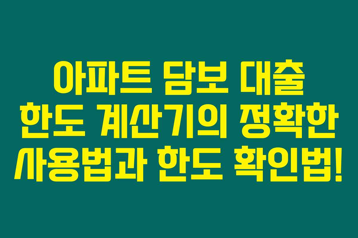 제가 직접 경험해본 결과로는 아파트 담보 대출을 받는 데 있어 가장 중요한 요소 중 하나는 바로 대출 한도입니다. 대출 한도를 결정하는 요소는 아파트 시세, 신용도, 그리고 정부의 규제(LTV, DSR 등)에 따라 다르기 때문에, 많은 사람들이 한도 계산기를 통해 이를 손쉽게 확인하는 방법을 찾고 있답니다. 아래를 읽어보시면 아파트 담보 대출 한도 계산기 사용법과 구체적인 예시를 통해 대출 한도를 쉽게 알아보는 방법을 소개해 드릴게요!