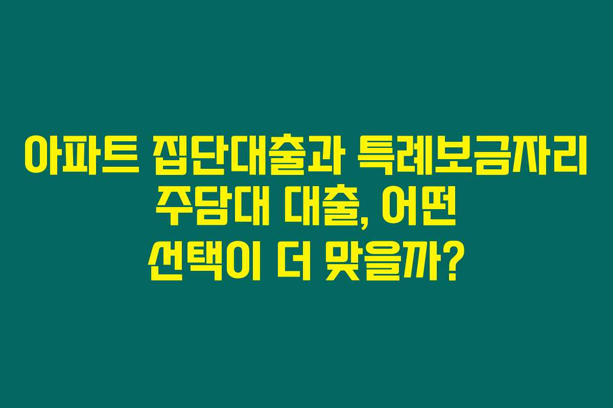 “아파트 집단대출과 특례보금자리 주담대 대출”은 각기 다른 조건을 가지고 있어요. 최적의 선택을 하시기 위해서는 개인의 상황에 맞는 대출 상품을 고민해볼 필요가 있지요. 궁금하신 점은 언제든지 댓글로 질문 해주세요!