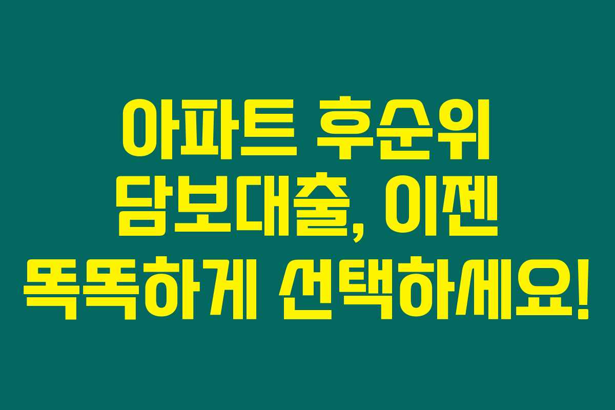 아파트 후순위 담보대출, 이젠 똑똑하게 선택하세요!