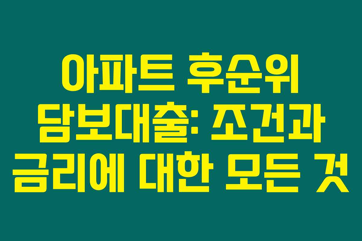 - 아파트 후순위 담보대출 신청 시 고려사항