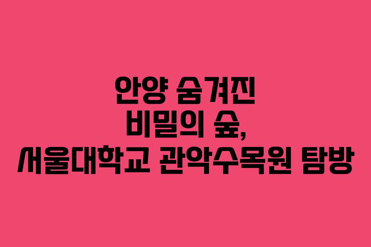 안양의 숨겨진 비밀의 숲인 서울대학교 관악수목원은 일반인이 쉽게 접근할 수 없는 특별한 장소입니다. 이곳은 교육과 연구를 위해 조성된 공간으로, 자연을 보호하고 후손에게 물려줄 소중한 자원으로서의 가치가 큽니다.