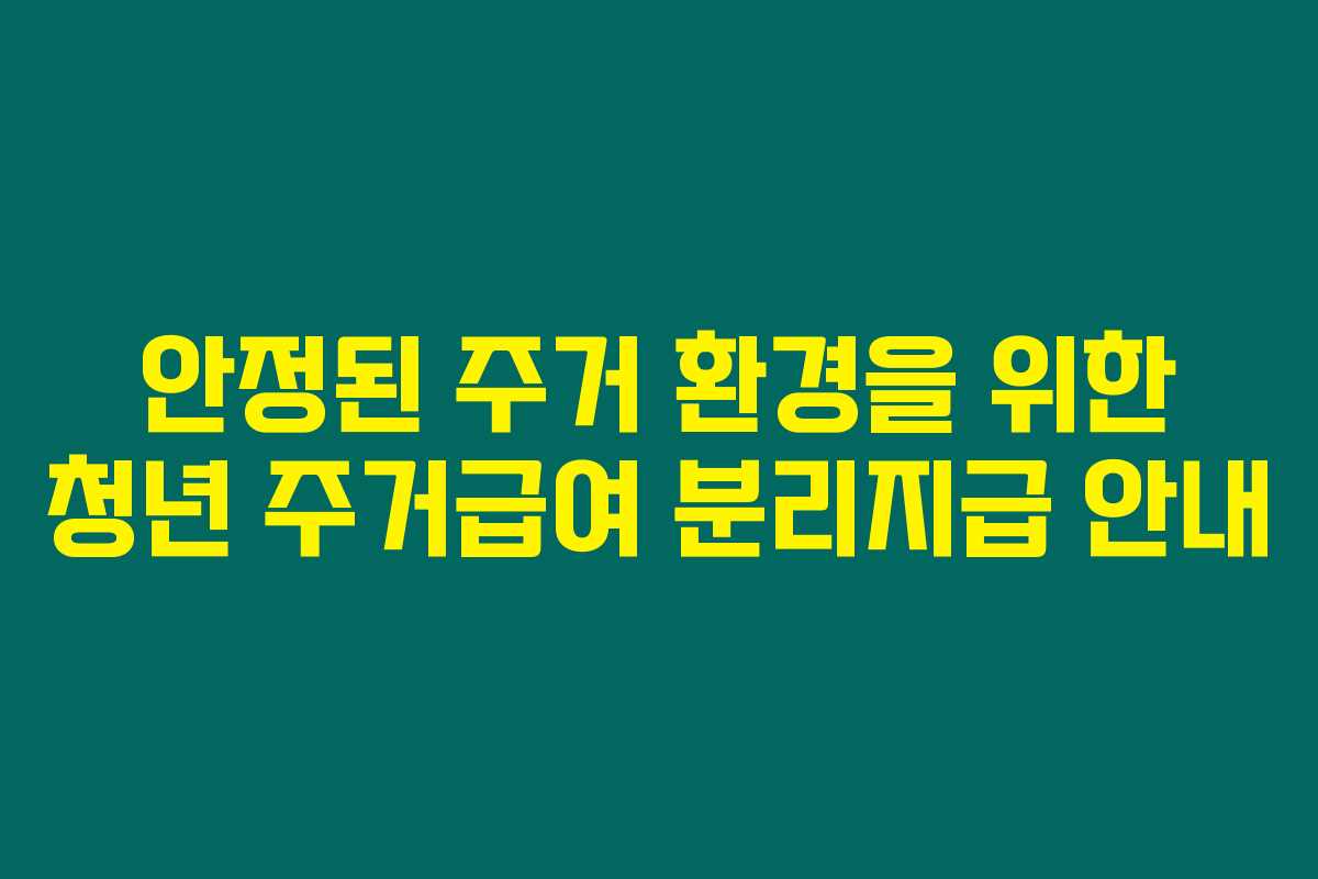 제가 판단하기로는, 청년들에게 안정적인 주거 환경을 제공하기 위한 청년 주거급여의 분리지급에 대한 정보는 매우 중요합니다. 이 프로그램은 생활이 어려운 청년들이 독립적으로 생활할 수 있도록 돕는 내용을 담고 있습니다. 청년 주거급여는 부모와 떨어져 살며 취업이나 학업을 위해 생활하는 청년을 대상으로 하여, 주거 안정성을 높여 주기 위한 지원입니다. 아래를 읽어보시면 해당 프로그램에 대해 더 많은 정보를 얻을 수 있습니다.