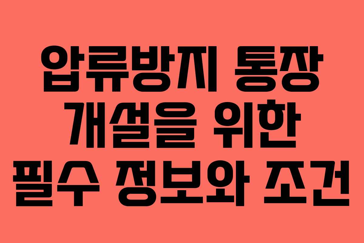 압류방지 통장은 생계를 위협받는 이들에게 중요한 재정적 안전망을 제공합니다. 이 통장을 개설하기 위해서는 특정한 조건을 충족해야 하며, 다양한 종류의 통장 옵션이 존재합니다. 여기서는 압류방지 통장에 대한 모든 필요한 정보를 상세히 설명합니다.