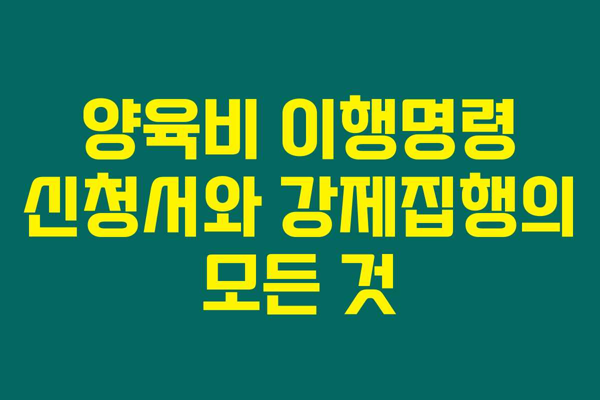 제가 직접 경험해본 결과로는, 양육비 문제는 많은 부모들에게 큰 고민거리가 됩니다. 특히, 이혼 후 아이를 키우는 양육자가 비양육자로부터 양육비를 제대로 지급받지 못할 때, 법적인 방법을 통해 자신을 보호해야 하죠. 아래를 읽어보시면 양육비 이행명령 신청서 작성 방법과 강제집행 절차에 대한 중요 정보를 확인하실 수 있습니다.