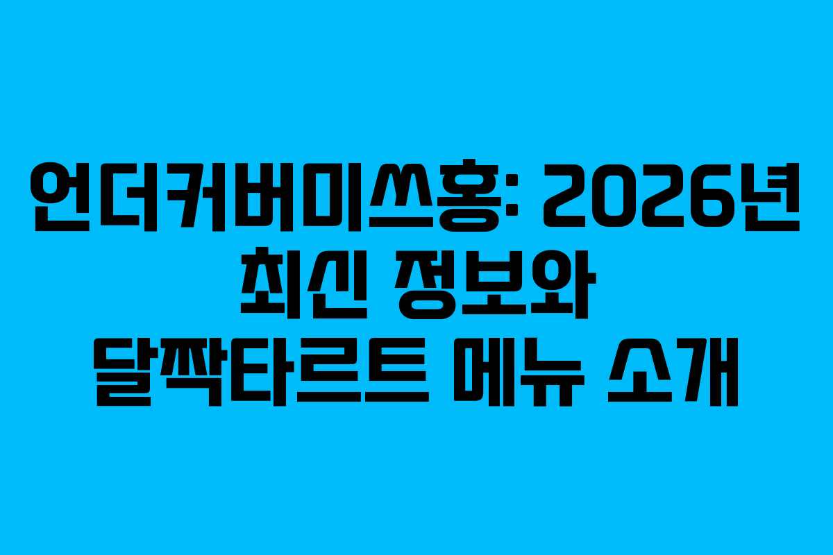 언더커버미쓰홍은 다양한 매력을 지닌 작품으로, 최근 많은 이들의 관심을 받고 있습니다. 이 글에서는 2026년 기준으로 최신 정보와 함께 달짝타르트 메뉴에 대한 심도 있는 소개를 통해 독자들에게 유용한 정보를 제공하겠습니다.