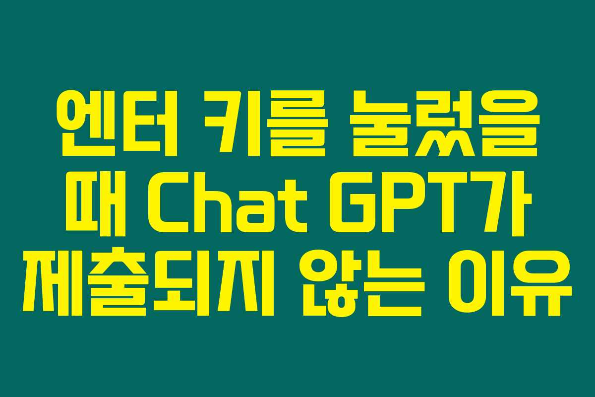 Chat GPT는 많은 사용자들에게 도움이 되는 대화형 AI 플랫폼입니다. 그런데, 가끔 사용자들이 엔터 키를 눌렀을 때 메시지가 제출되지 않는 현상을 경험하게 됩니다. 이러한 현상은 여러 가지 이유로 발생할 수 있으며, 아래를 읽어보시면 그 원인과 해결 방법을 알아보실 수 있어요.