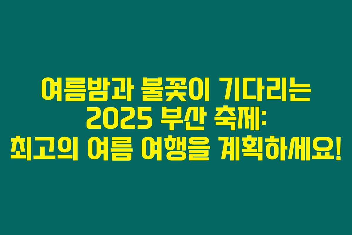 여름밤과 불꽃이 기다리는 2025 부산 축제: 최고의 여름 여행을 계획하세요!