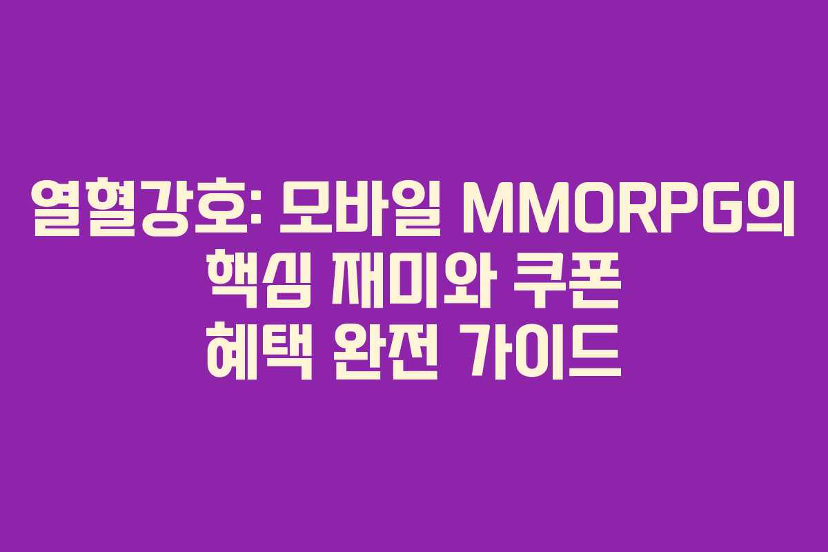 아래를 읽어보시면 열혈강호의 최신 업데이트와 쿠폰 입력 방법, 신규 시스템으로 강화된 플레이 경험을 한눈에 파악할 수 있습니다. 모바일 환경에서 즐기는 핵심 콘텐츠와 주의점도 함께 정리했습니다.