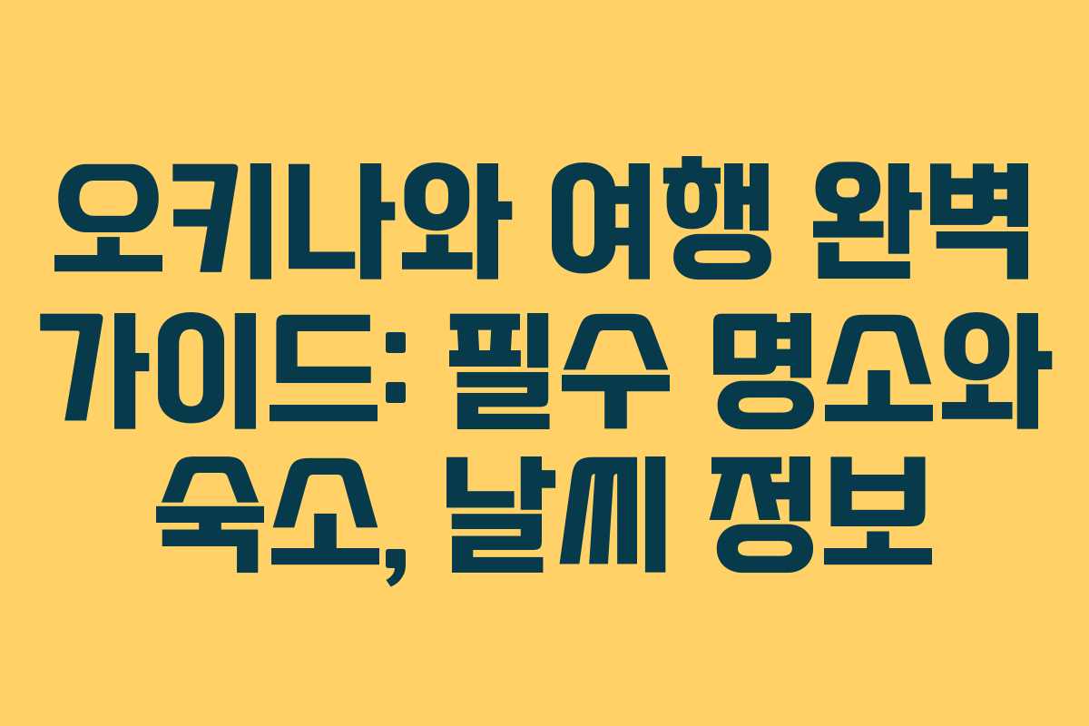 오키나와는 아름다운 자연과 독특한 문화가 어우러진 일본의 매력적인 여행지입니다. 이곳은 가족, 친구, 연인과 함께 즐길 수 있는 다양한 관광 명소와 액티비티로 가득 차 있습니다. 이번 가이드를 통해 오키나와의 필수 명소, 숙소 추천, 계절별 날씨 정보, 그리고 교통 팁을 알아보겠습니다.