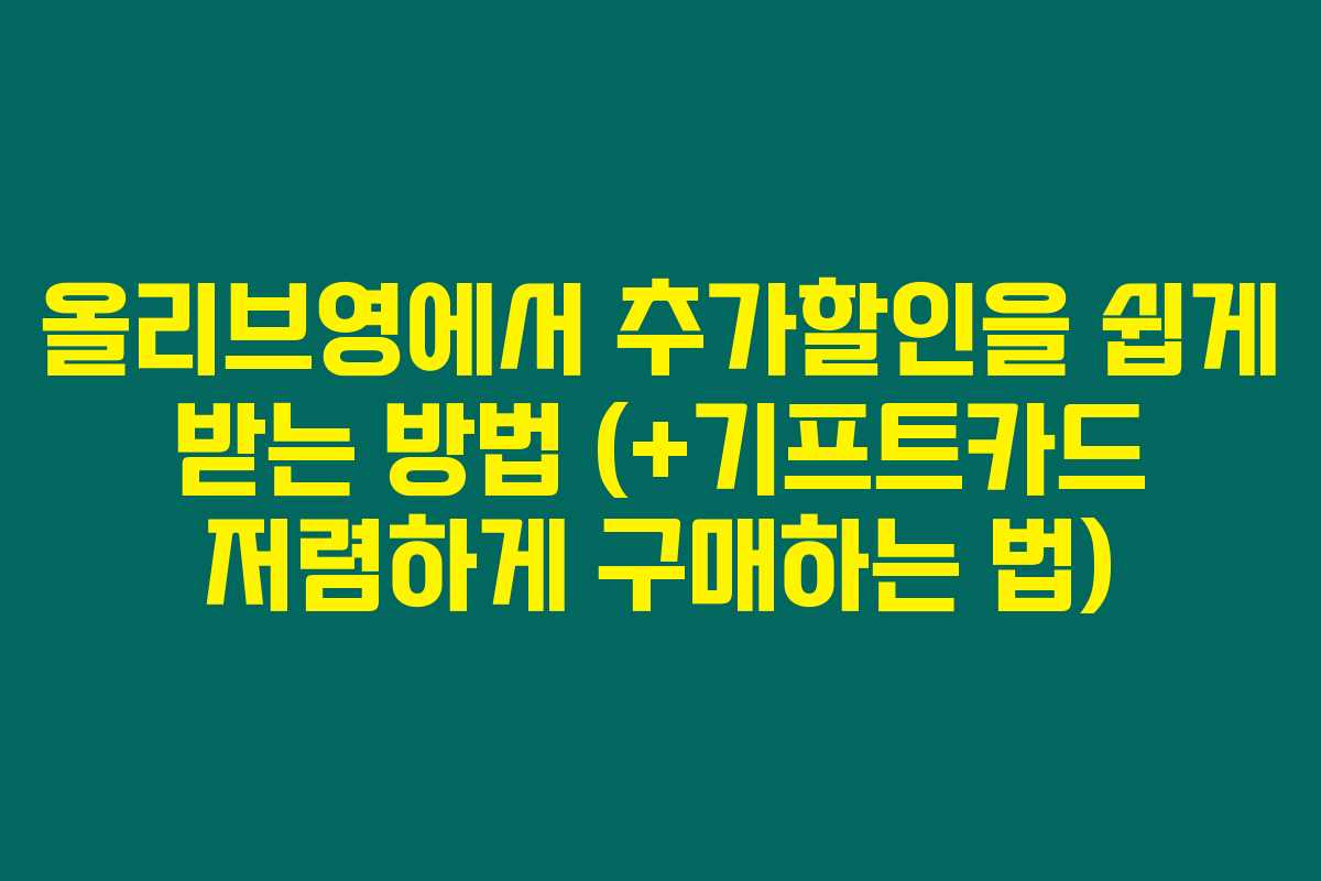 이렇게 올리브영에서 추가 할인 받는 방법과 기프트카드를 저렴하게 구매하는 법에 대해 알아보았어요. 이제 올리브영을 더욱 스마트하게 이용해보세요! 할인받는 재미가 쏠쏠할걸요?