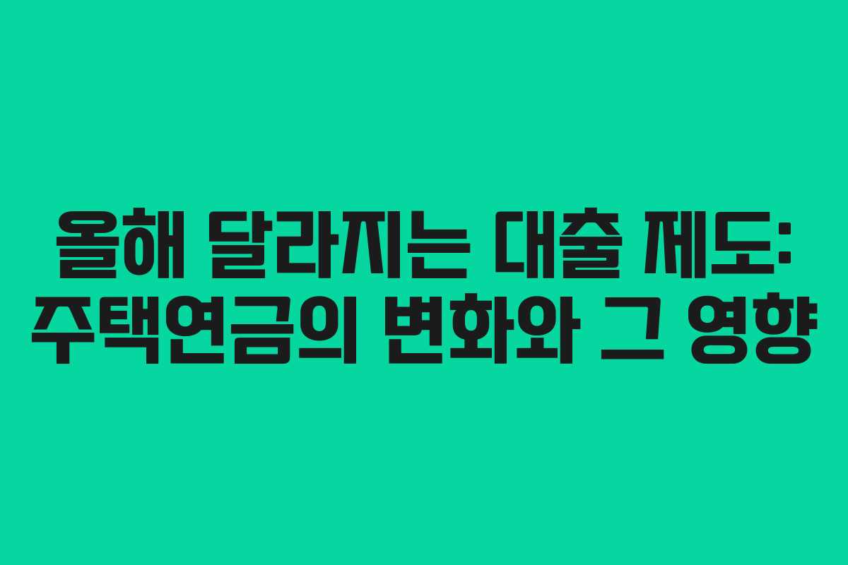 올해 달라지는 대출 제도: 주택연금의 변화와 그 영향
