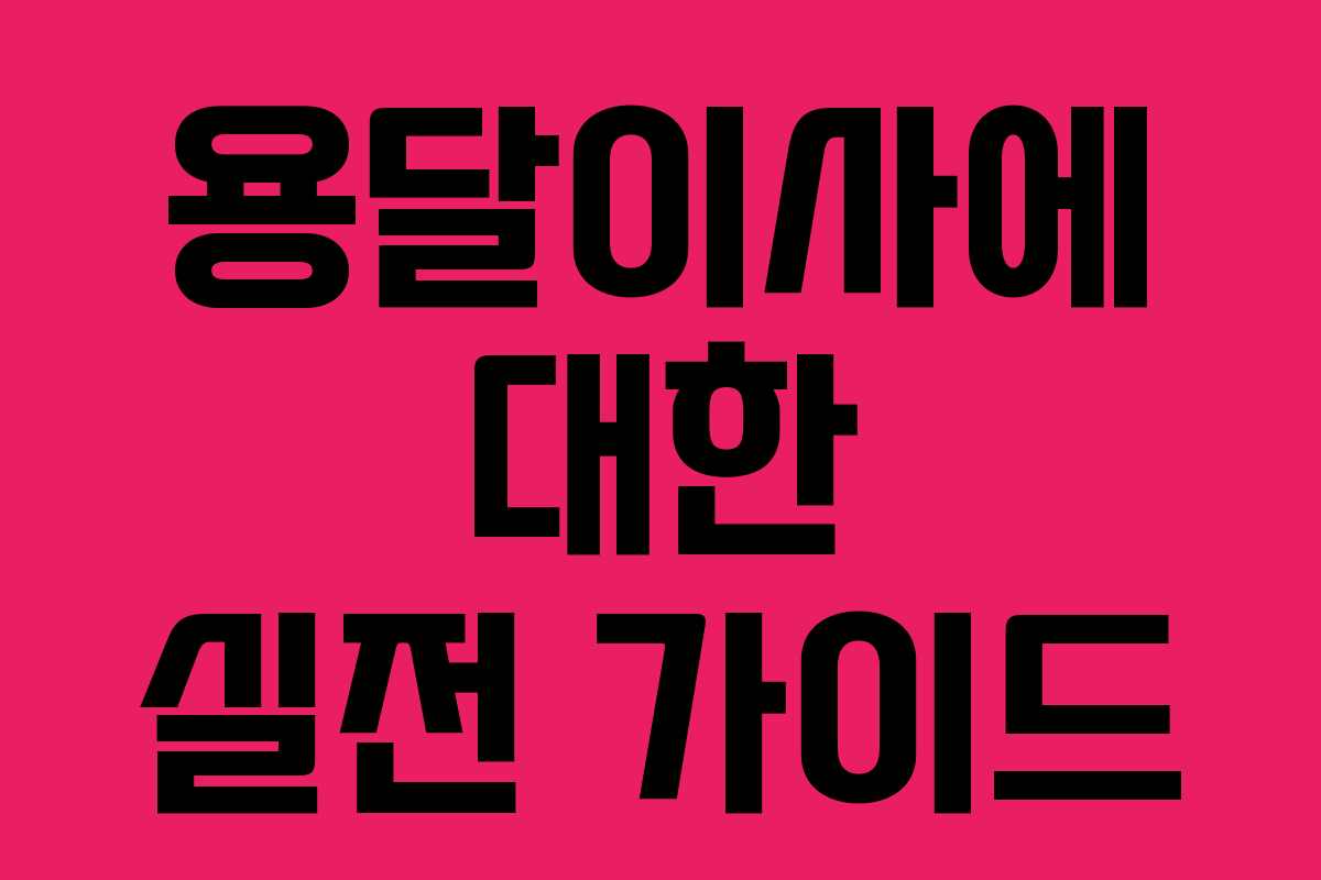 용달이사에 대한 실전 가이드
