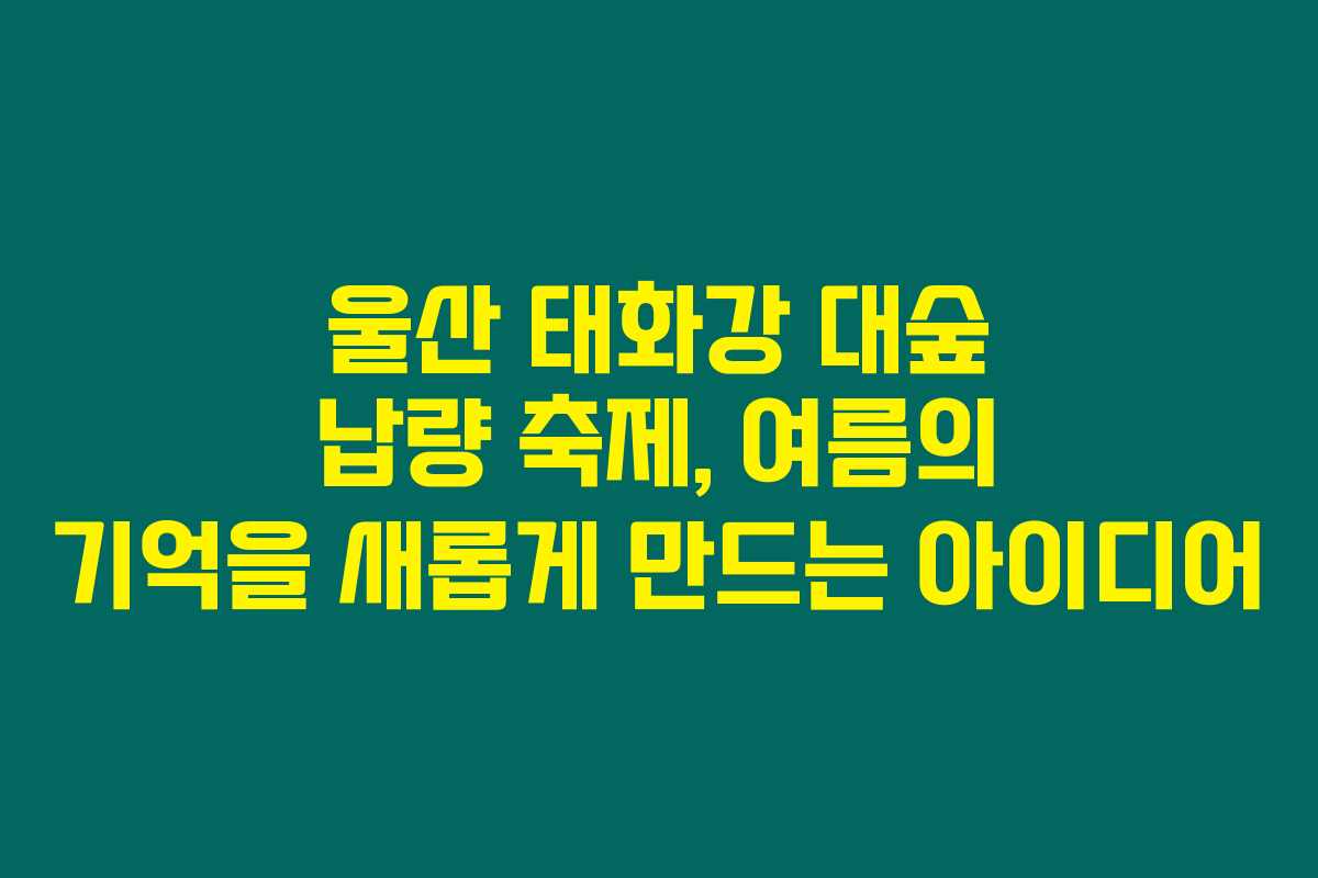 결론적으로 이처럼 울산 태화강 대숲 납량 축제는 여름밤에 특별한 경험을 제공할 수 있는 장소랍니다. 테마별 공연과 다양한 음식들을 즐기며 잊지 못할 추억을 만들어 보세요.