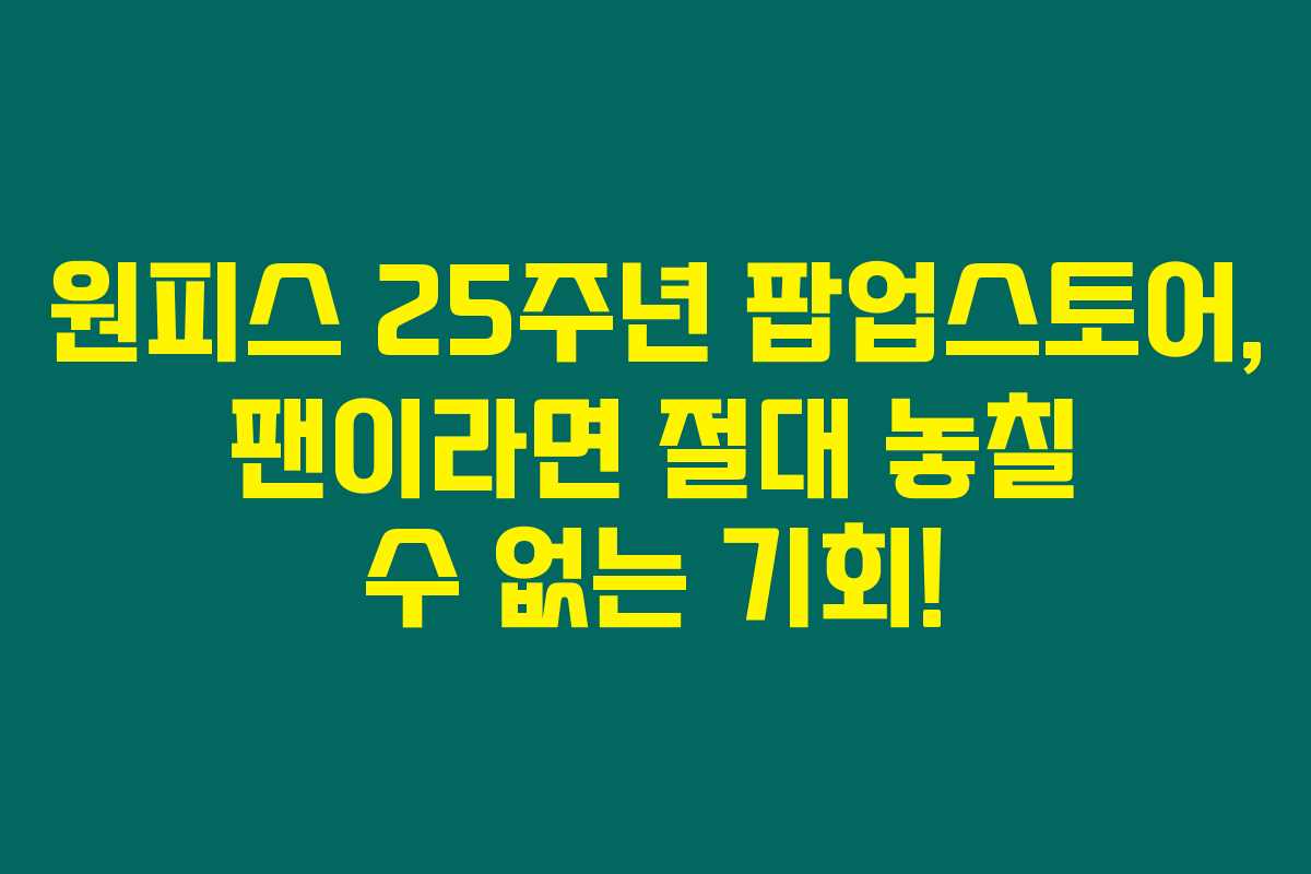 원피스 25주년 팝업스토어는 정말 특별한 경험이 될 거예요. 놓치지 마시고 꼭 방문해 보세요!