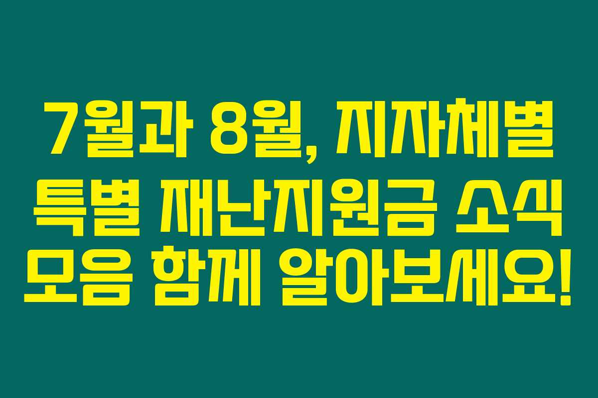 제가 직접 조사해본 바로는, 7월과 8월에 많은 지자체에서 어렵고 힘든 시기를 견디고 있는 국민들을 위해 특별 재난지원금을 지급하기로 했어요. 지원금은 10만원에서 50만원까지 다양하게 지급될 예정이며, 요즘 물가 상승과 전기요금 인상 등으로 힘든 생활을 하고 있는 분들에게 큰 도움이 될 것 같습니다. 아래를 읽어보시면 지자체별로 어떤 지원금이 어떻게 지급되는지 확실하게 알 수 있을 거예요.