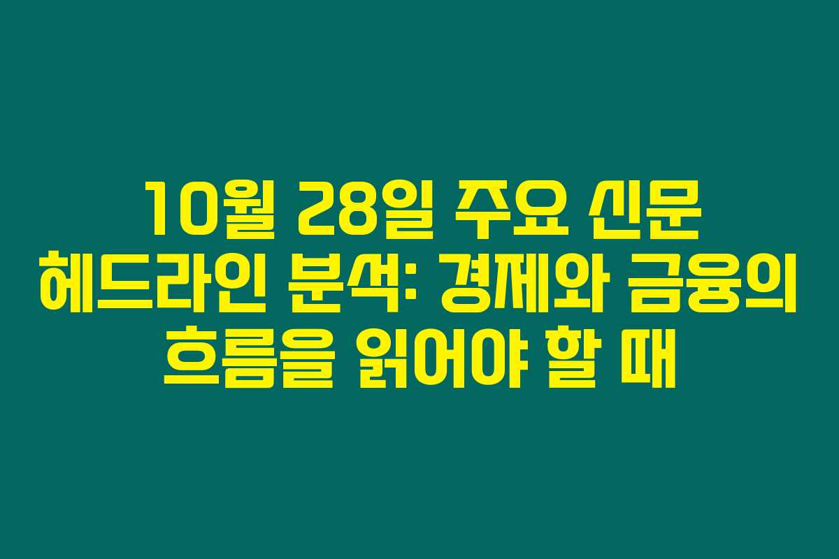 최근 경제적 불확실성이 커져가는 가운데 10월 28일 주요 신문 헤드라인을 통해 우리는 현재 국내외 경제와 금융 트렌드를 살펴볼 수 있습니다. 혹시 당신도 경제와 금융 소식에 귀 기울이고 있지만 어떤 정보를 더 깊이 파악해야 할지 고민하고 계신가요? 이런 고민을 하시는 분들은 꼭 아래를 읽어보세요. 최신 정보로 무장하고 현명한 선택을 하는 데에 큰 도움이 될 거예요.
